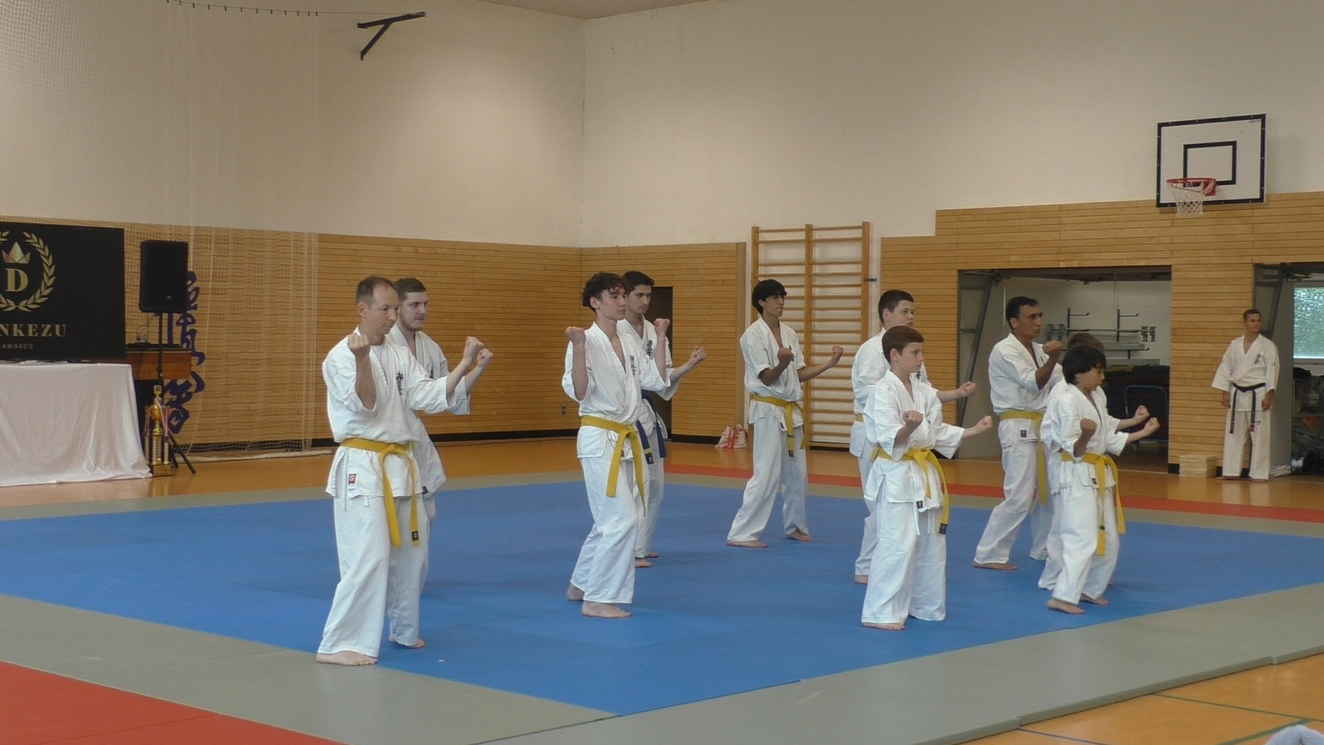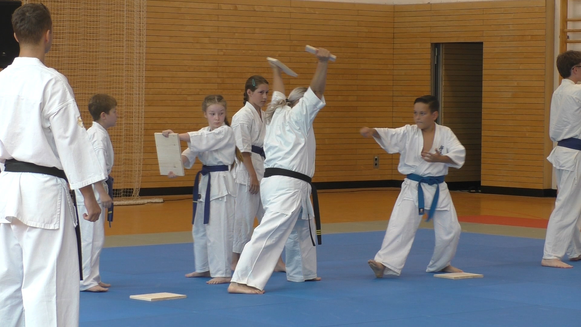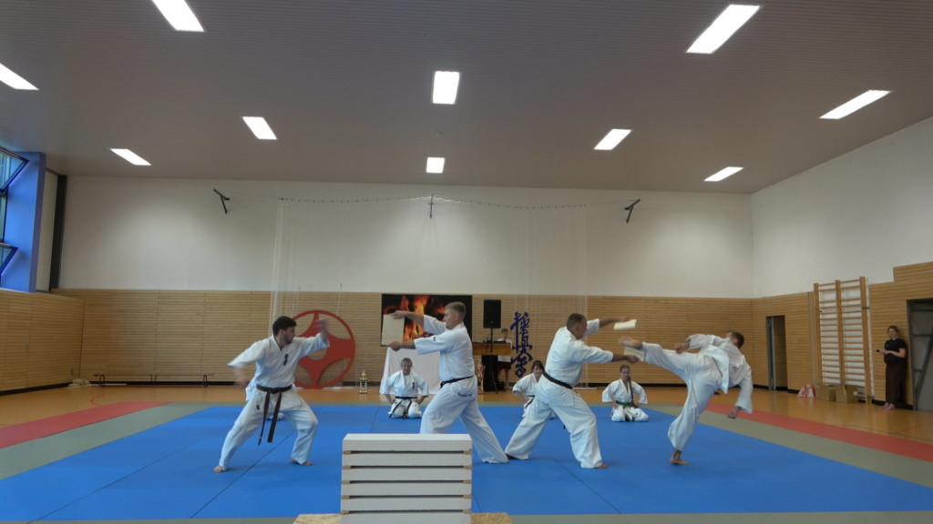 С приходом новых тренеров приходят и новые идеи! Во всех немецких школах популярны так называемые летние праздники, которые организуют ученики вместе с учителями, а приглашают ещё и родителей. Так и решили в этом году наши старшие тренеры – Алёна и Иван Демановы. Группы каратэков разбились на команды и предложили свои выступления, содержащие разные части нашего каратэ, а девочки из танцевальной школы представили уже знакомые всем танцы, удивив наших гостей и нас самих совершенно новыми. Всех по традиции угостили сосисками с булочкой и радостные отправились на каникулы – набираться сил перед новым сезоном!