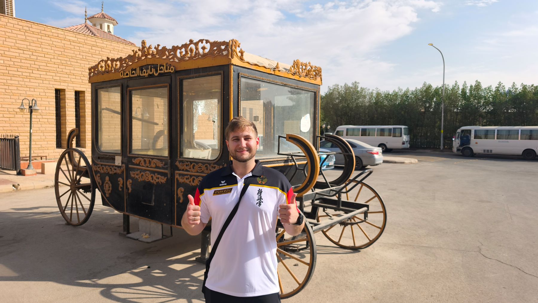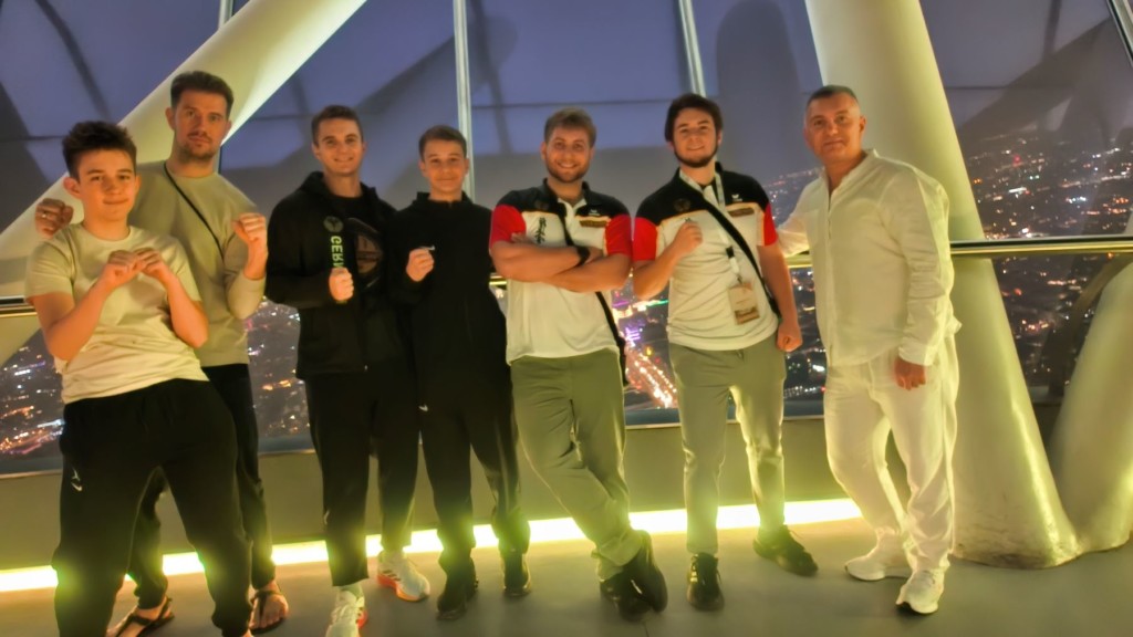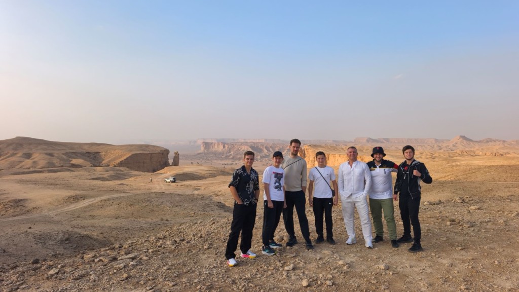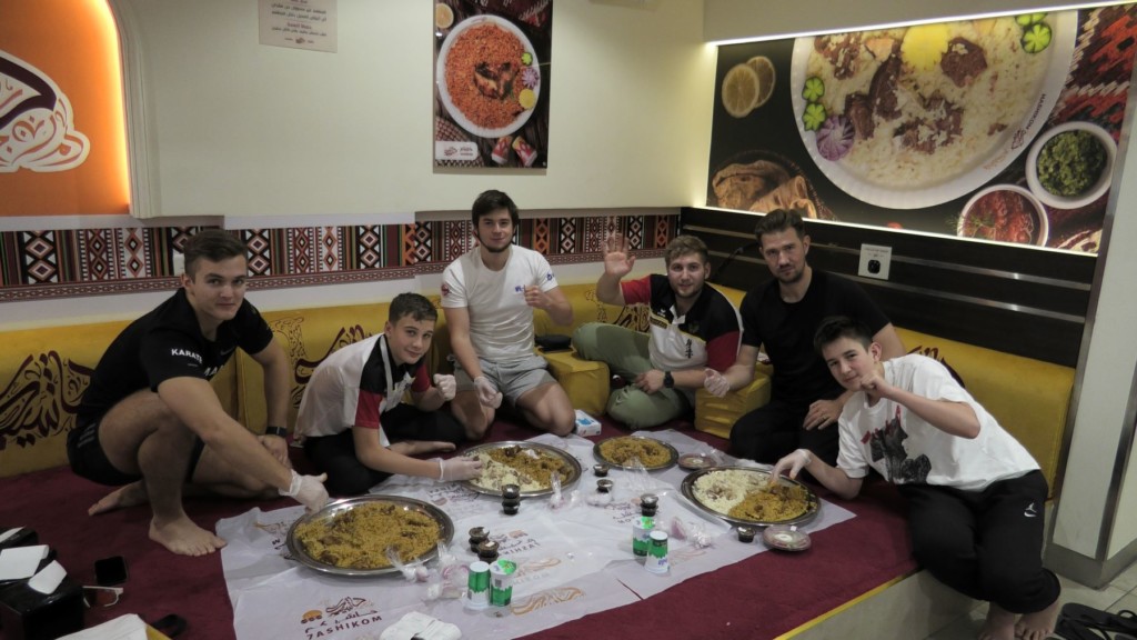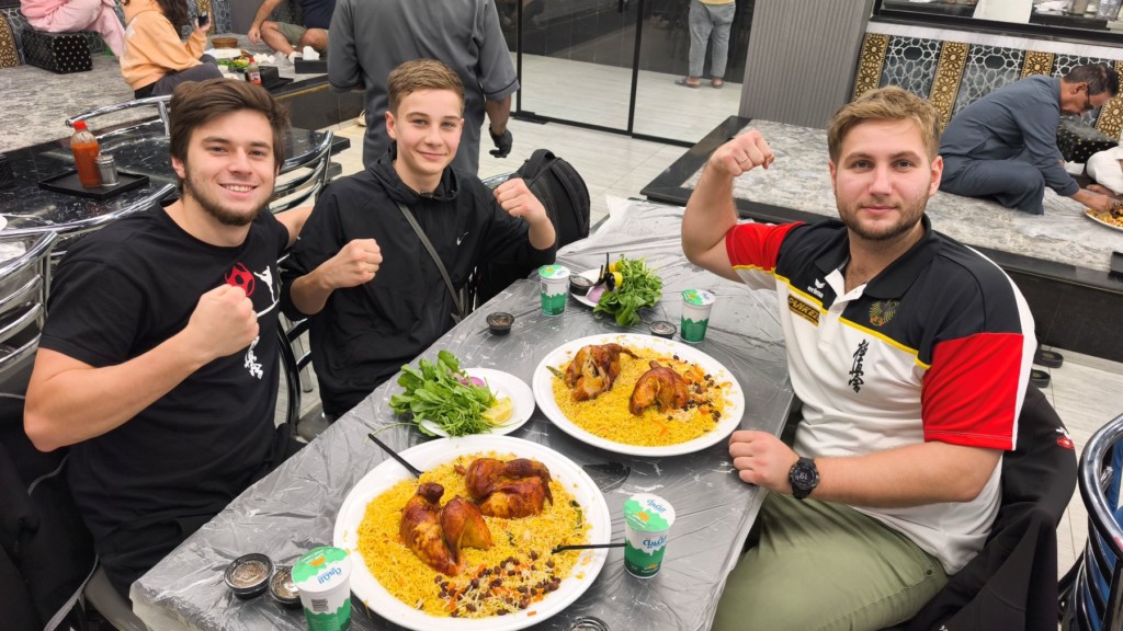 Практически закрытая ещё вчера страна – Саудовская Аравия, решила провести главный турнир своей организации – чемпионат МИРА! И мы не могли, конечно, пропустить такое событие. Чисто мужская команда (религиозная специфика страны) отправилась на этот турнир. Лиор стал участником судейских коллегий, Денис был верным помощником, болельщиком и доктором команды, Даня решил проверить свои навыки в разделе Ката, а лучшие на сегодня бойцы нашей школы, да и, наверное, всей Германии – Иван, Стивен и Филипп оказались на татами. Кстати стоит заметить, что мы были единственными представителями своей страны в этот раз.