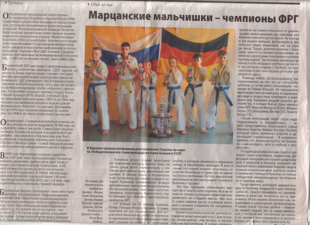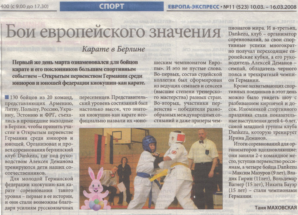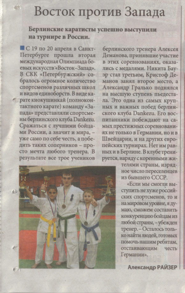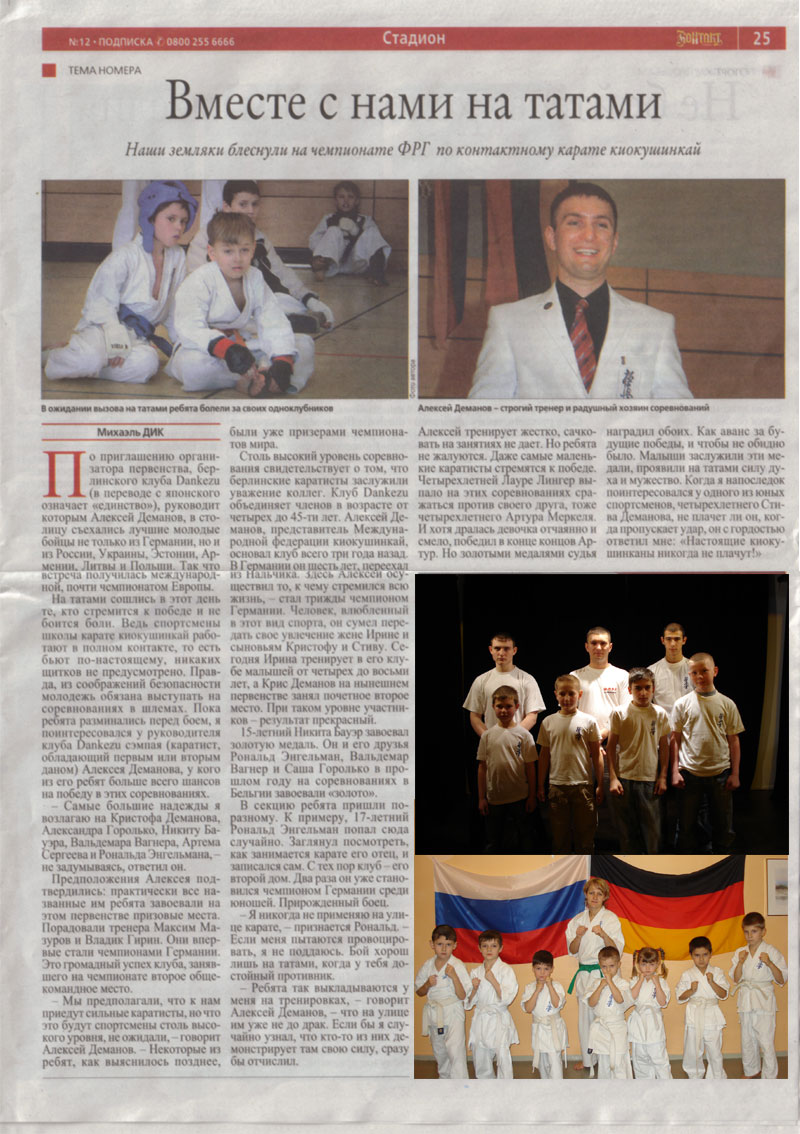 Наш клуб основан в 1996 году в Берлине. Мы тренируем детей и взрослых в стиле Кёкусин каратэ-до. Наши спортсмены представляют Германию на международных соревнованиях KWU и завоевывают медали по всему миру.
